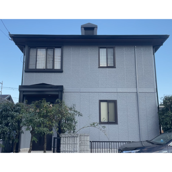 ラジカル制御型のガイソーウォール無機Zを使用しています。紫外線による塗膜劣化対策として高耐候酸化チタンと光安定剤による塗膜劣化を抑制する技術により非常に優れた耐久性があります。塗膜の表面を水になじみやすくすることで雨だれ汚染などから建物を守ります。中塗りをすることで下塗りと上塗りの密着性を高める効果があります。耐候性や仕上がりをよくするために中塗りと同じ塗料を使用しています。塗料の特殊分子が塗膜間の隙間を埋めることで緻密な塗膜形成が可能になり高光沢が実現します。
