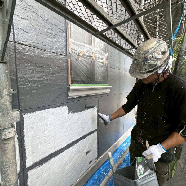 カチオン系のシーラーを使用しています。浸透性に優れており、旧塗膜や基材に対する補強効果が得られる塗料です。塗装することで、接着面の強化や上塗り塗料との付着性を高めることができます。