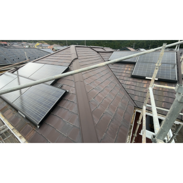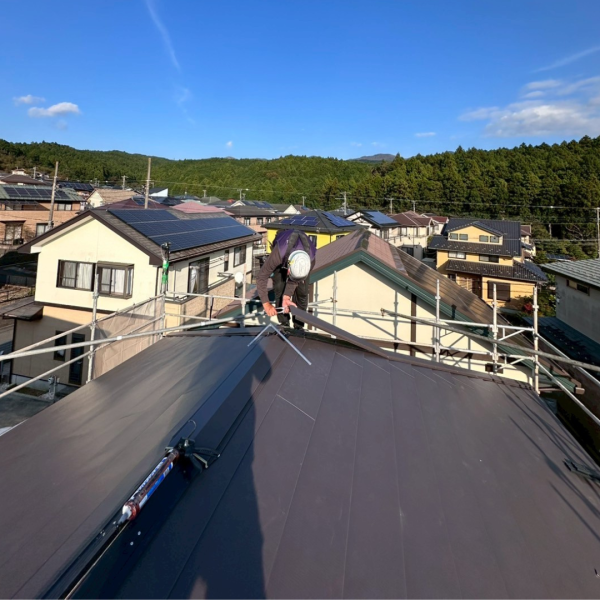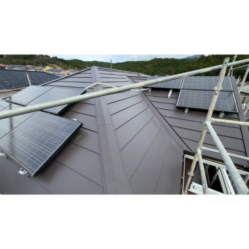 この度は屋根リフォーム工事を弊社にお任せいただき、誠にありがとうございました。今回はガルバリウム鋼板を使用したカバー工法をご提案させていただきました。太陽光パネルの脱着や取付も伴う工事でしたが、耐久性・耐候性のある仕上がりとなりM様にもご満足いただけて大変嬉しく思っております。また弊社のYouTube撮影にもご協力いただきありがとうございました。今後も点検やメンテナンスを通じ、安心してお過ごしいただけるようサポートしてまいりますので、引き続きよろしくお願いいたします。