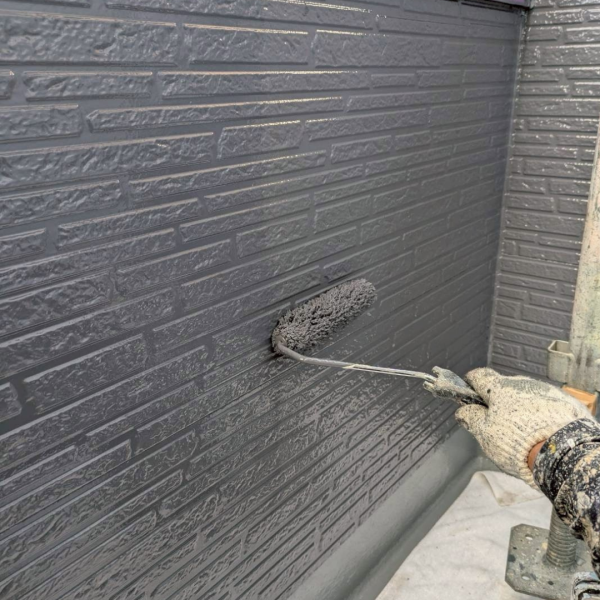 耐候性や仕上がりをよくするために中塗りと同じ塗料を使用しています。上塗り後はしっかりと乾燥させて、塗膜が十分に乾いたら完了です。
