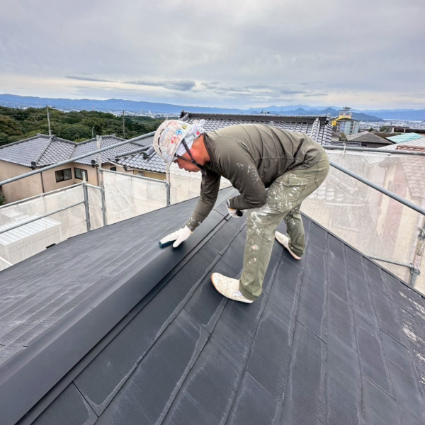 屋根の棟板金は雨風の影響を受けやすく、時間が経つと錆びが発生しやすい箇所です。屋根の錆が進行すると屋根材の劣化を早めるため、屋根塗装の前にしっかりと錆止め塗装を行うことが重要です。またこの工程をしっかり行うことで塗装の密着性を高め、屋根の耐久性を向上させます。