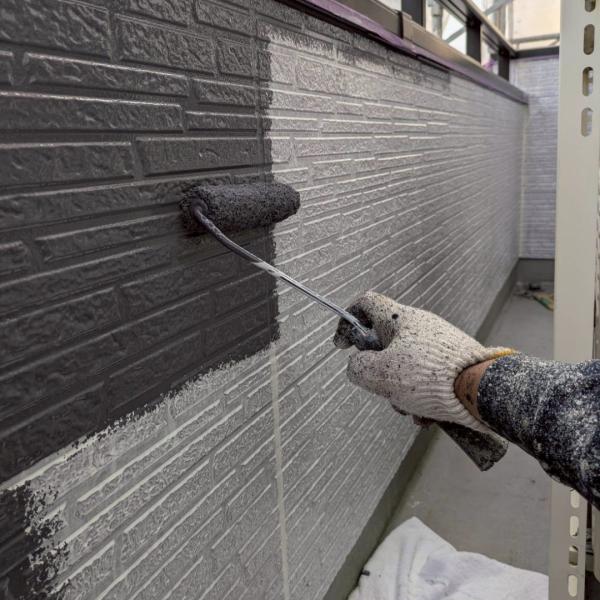 カチオン系のシーラーを使用しています。浸透性に優れており、旧塗膜や基材に対する補強効果が得られる塗料です。塗装することで、接着面の強化や上塗り塗料との付着性を高めることができます。